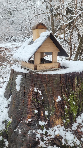 Das Futterhäuschen am Borstein wurde durch den Wirt der Gaststätte am Borstein renoviert, das Material stellte die Vogelschutzgruppe L.-Reichenbach e.V.