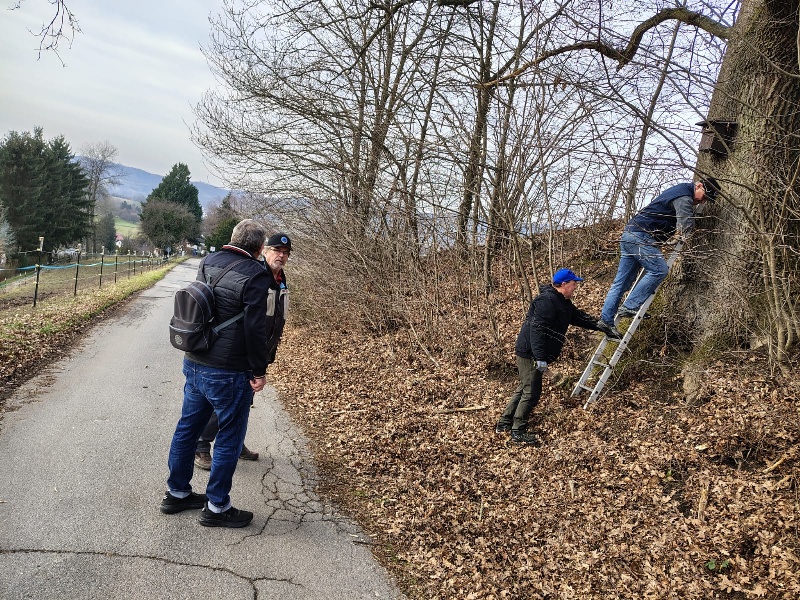 Nistkästen reinigen im Brandauer Klinger am 02.02.2025
